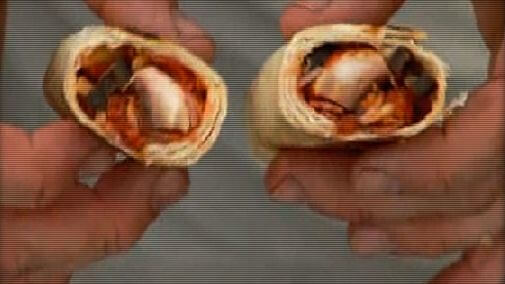 We used salami, ham, cheese, onion, capsicum, pineapple, olives. Add these all together then add tomato paste. Spread onto tortillas and wrap. Place on a lower heat on our BBQ and allow cheese to melt.